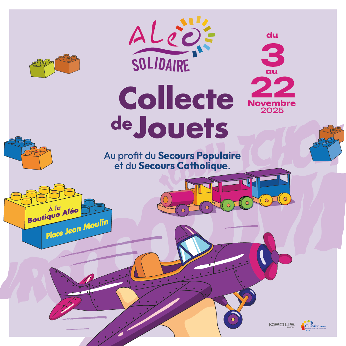 Lire l'actualitéDéposez des jouets neufs ou en bon état à la Boutique Aléo, Place Jean Moulin, ou dans les mairies citées ci-dessous, au profit du Secours Populaire et du Secours Catholique.